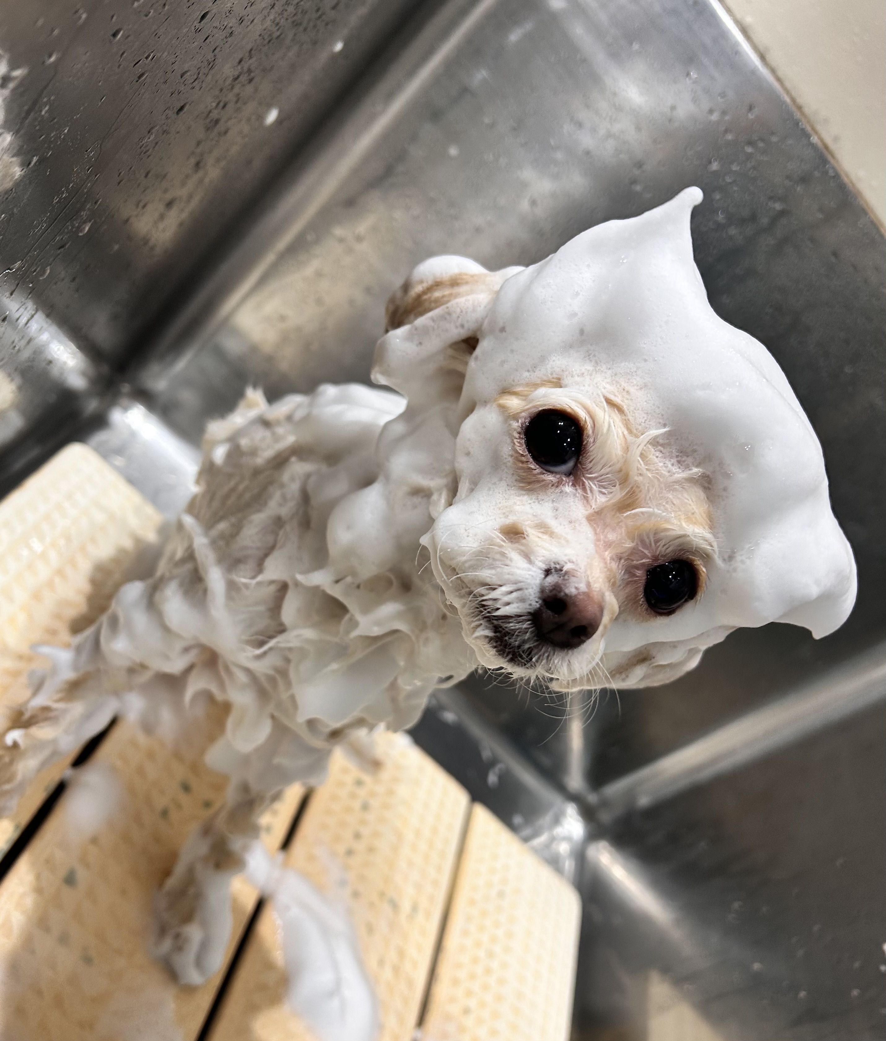 シャンプーカットコース+デンタルケア+はちみつの泡パックをご利用頂きました![]()