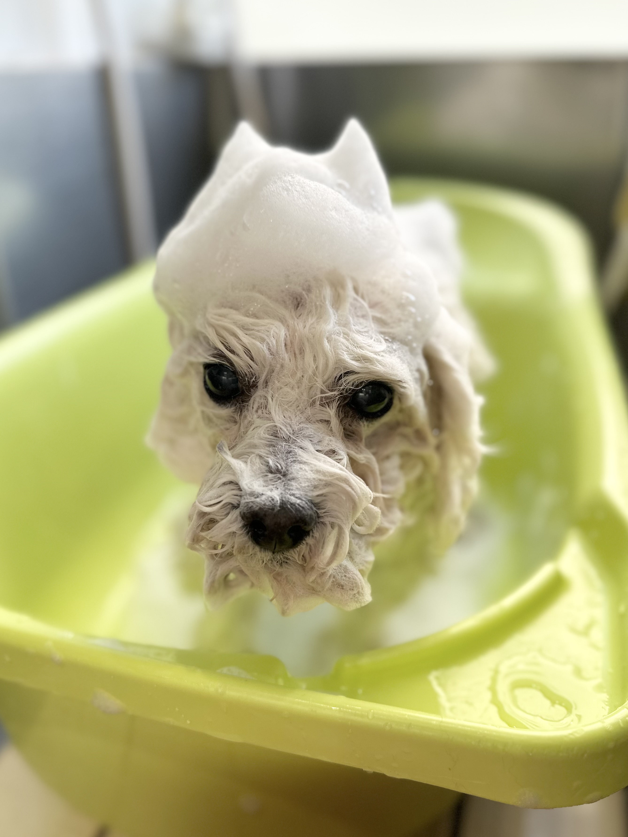 モコモコ泡で洗っていきます![]()