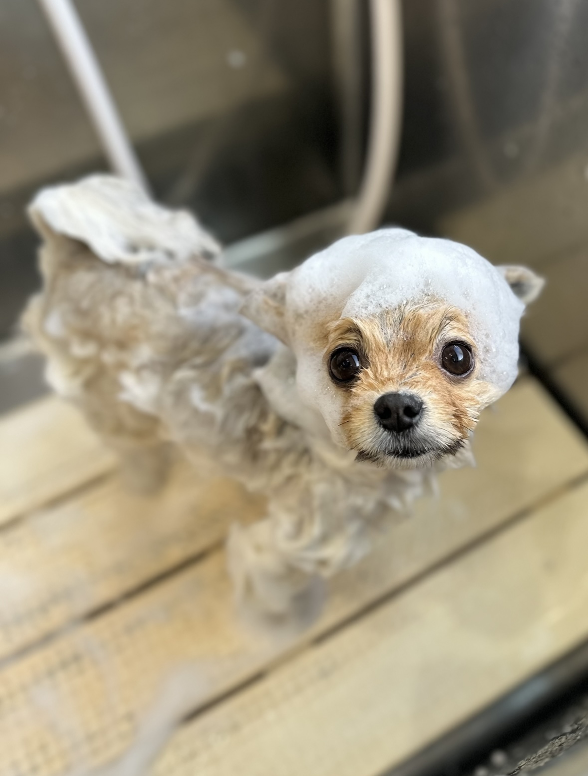 モコモコのシャンプーで汚れを落とします❍。