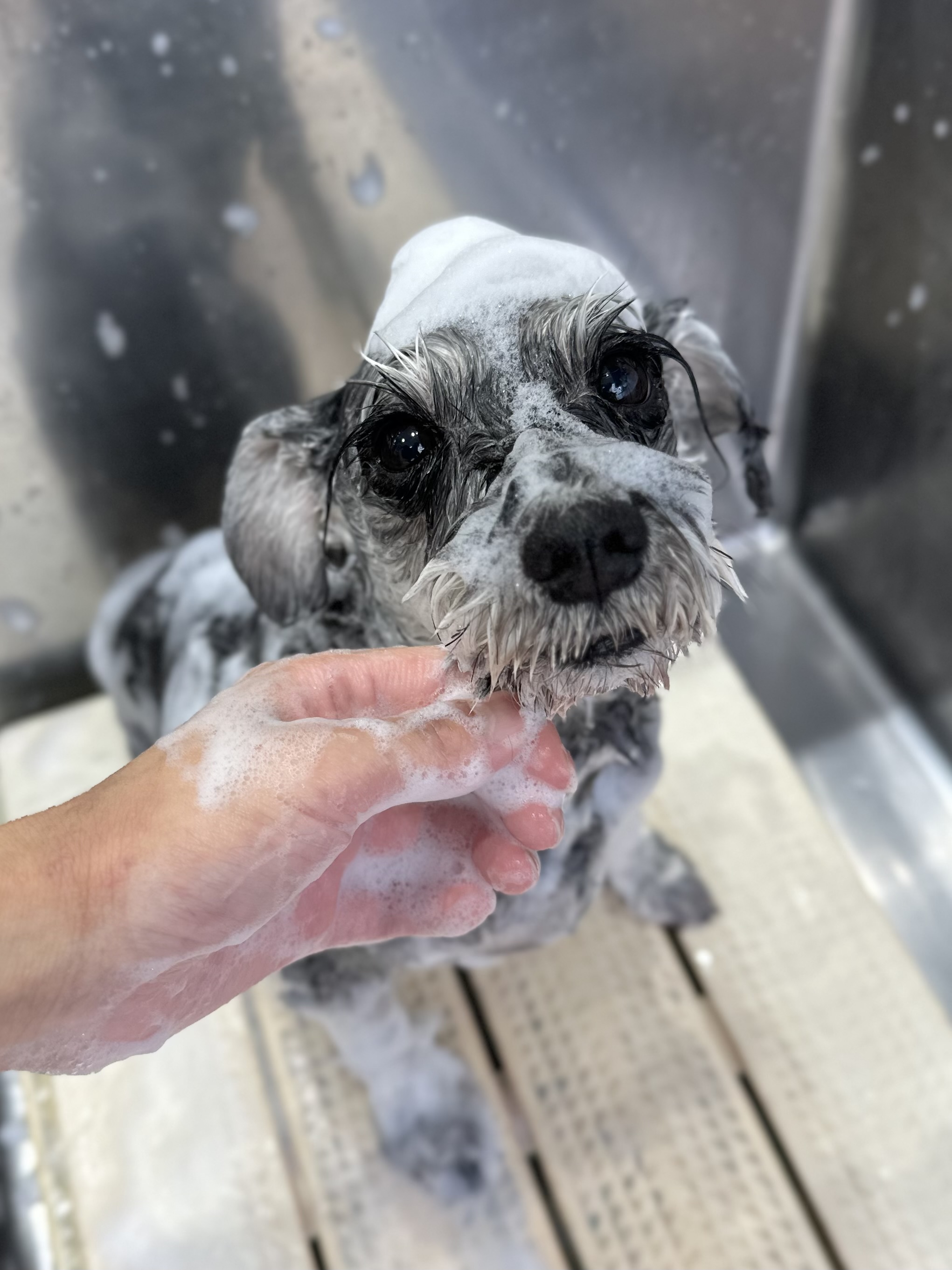 モコモコのシャンプーで汚れを落とします❍。