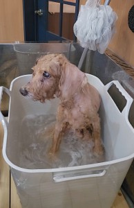 お風呂もお利口さんに入っていました![]()