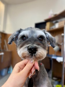 お顔はハサミでシュナカット、お口は丸く、体はバリカンでスッキリ![]()