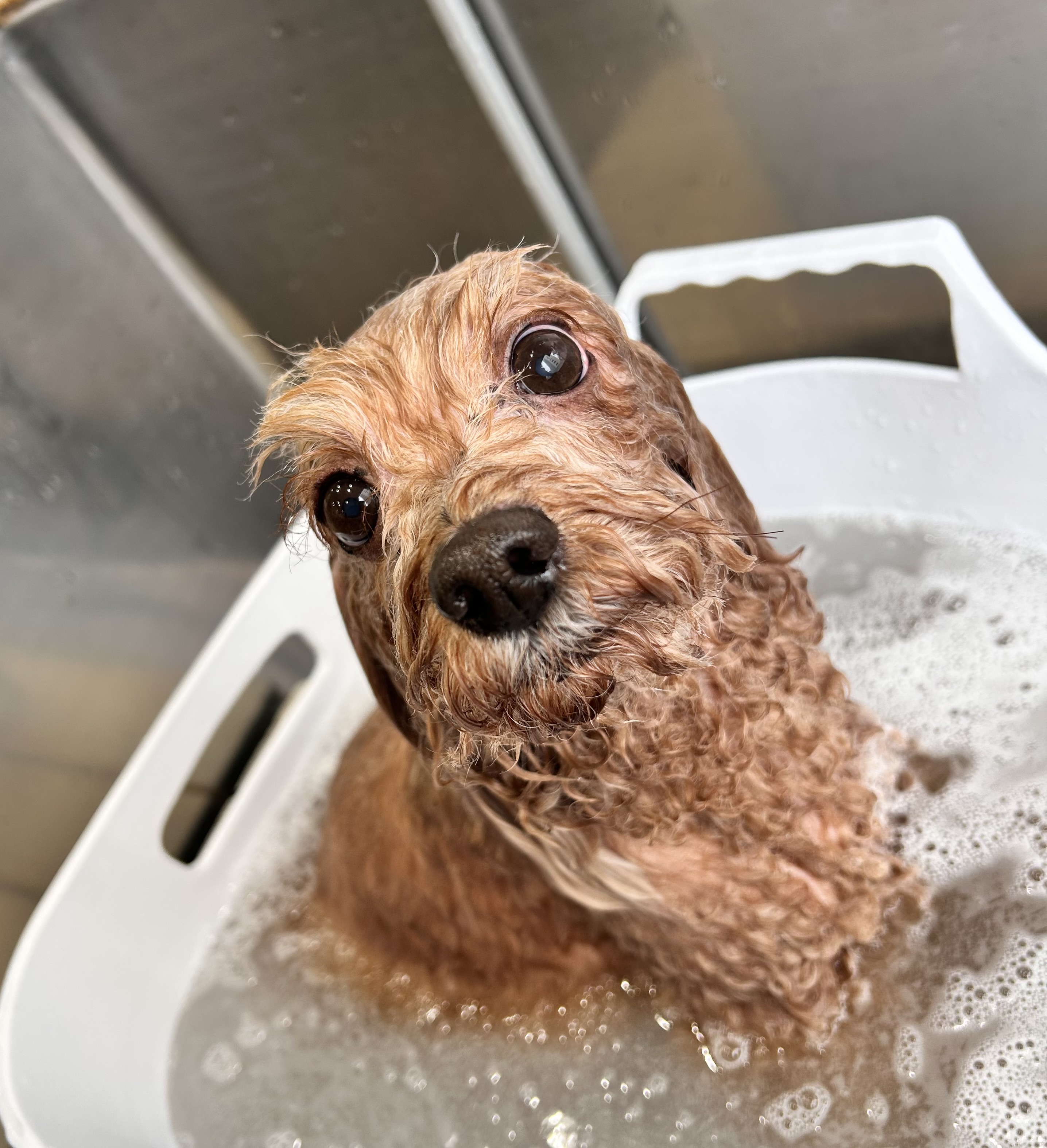 モコモコに泡立てシャンプーしていきます!