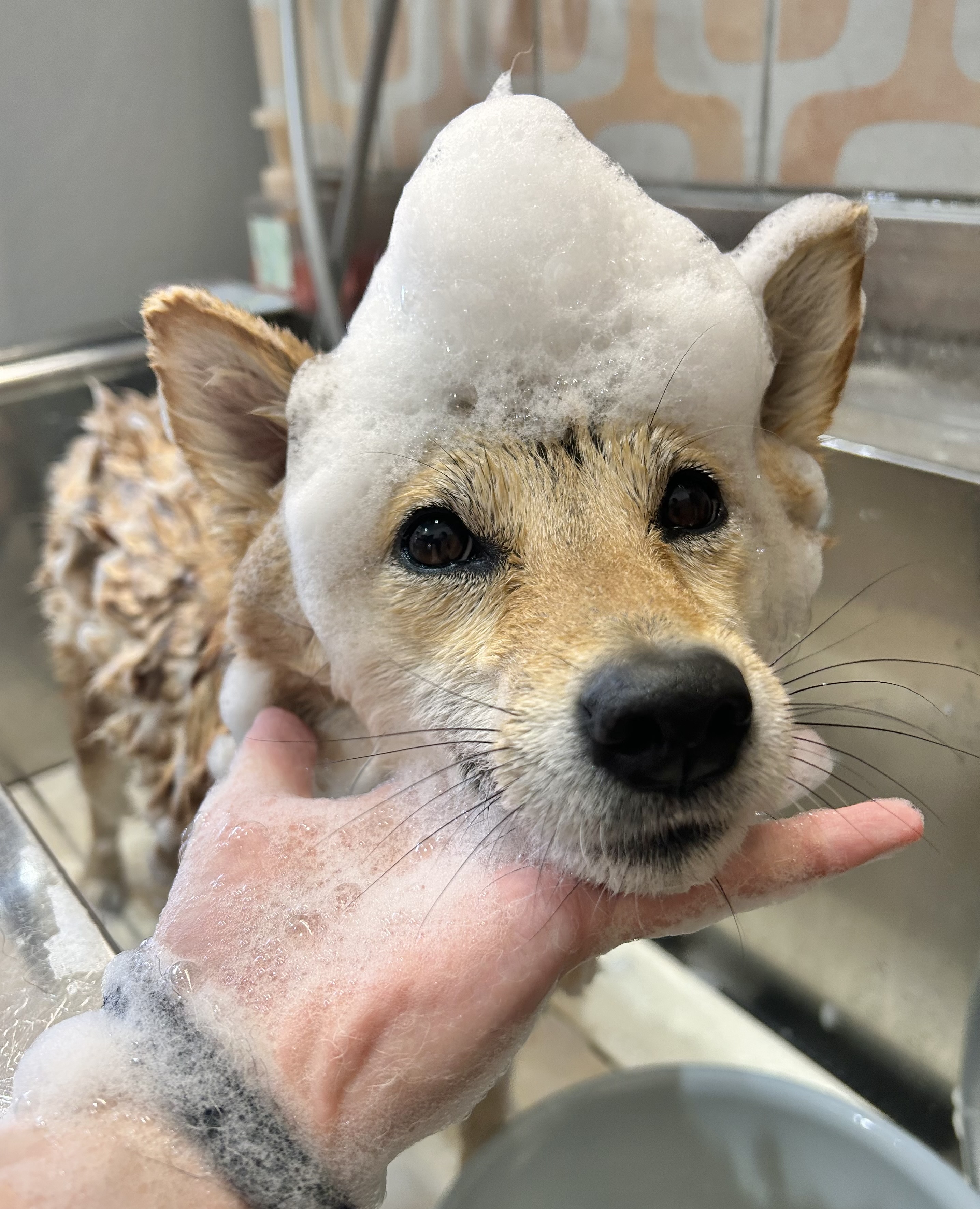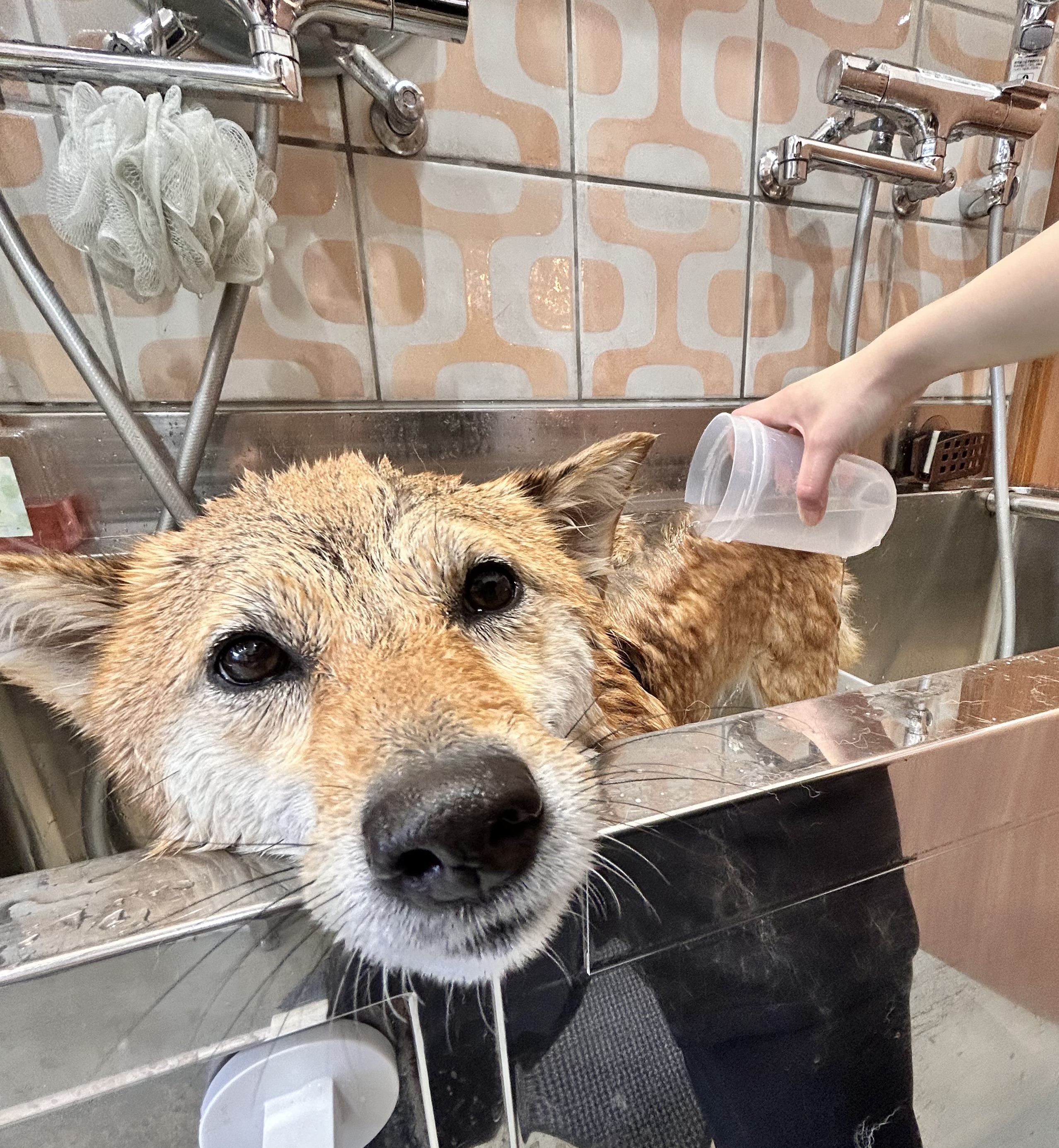 耳掃除、爪切り、足裏バリカン、歯磨き、ブラッシングを済ませてからシャンプーです![]()
