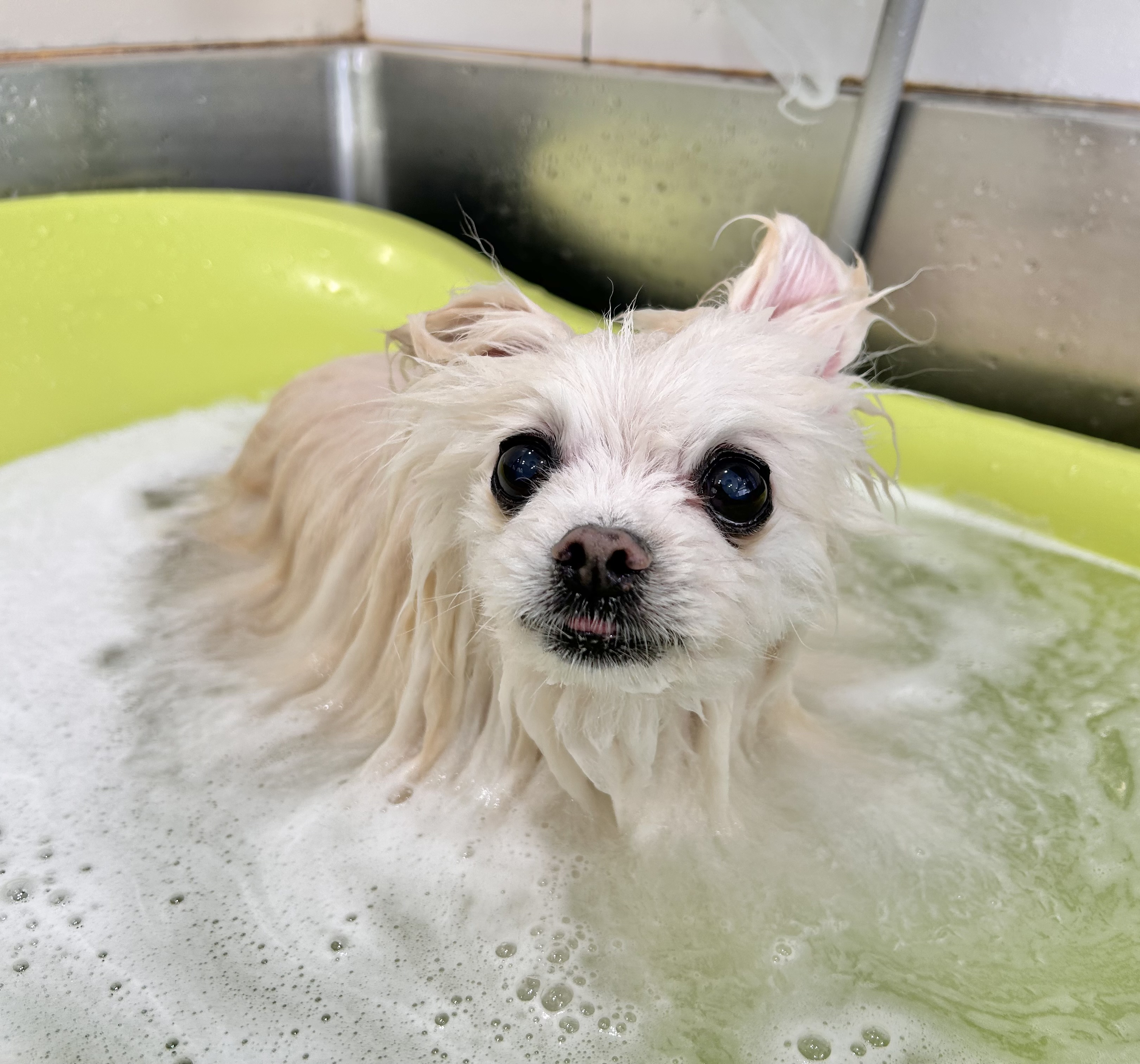 シャンプーコース+ナマケラシャンプー+持ち込み歯磨き+部分カット+炭酸泉をご利用頂きました