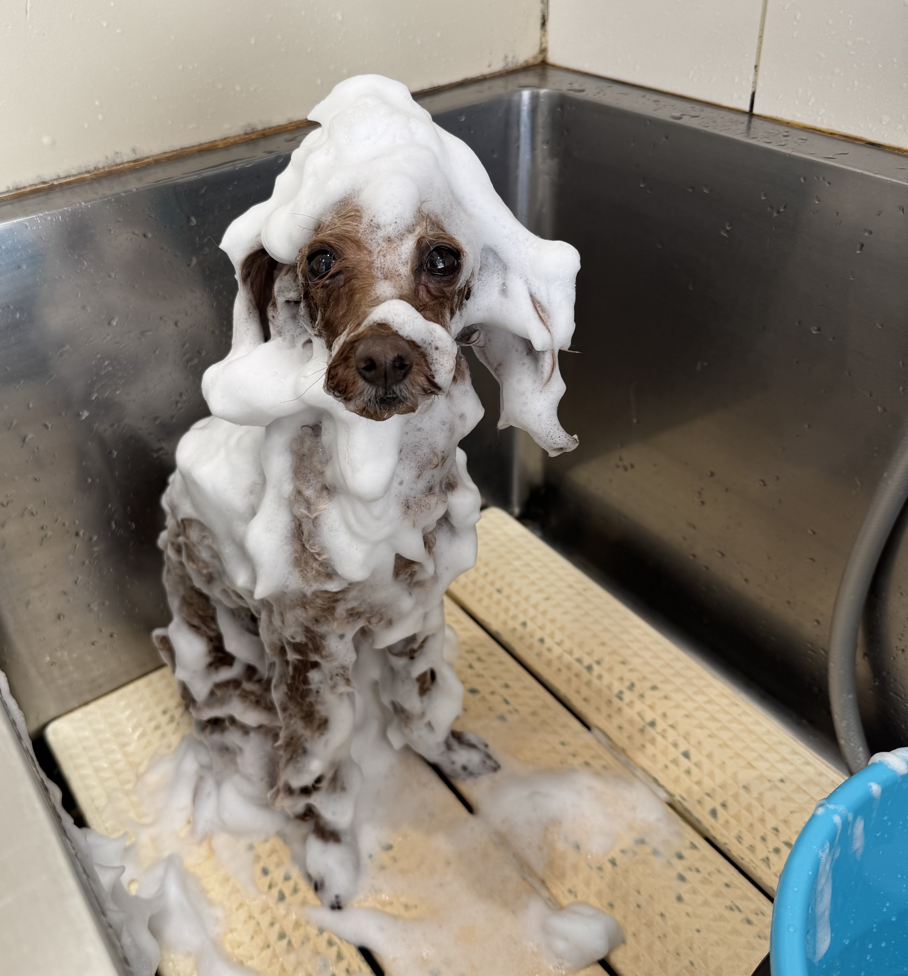 爪切りや足裏バリカン、耳そうじ、ブラッシングをした後お風呂へ!![]()
