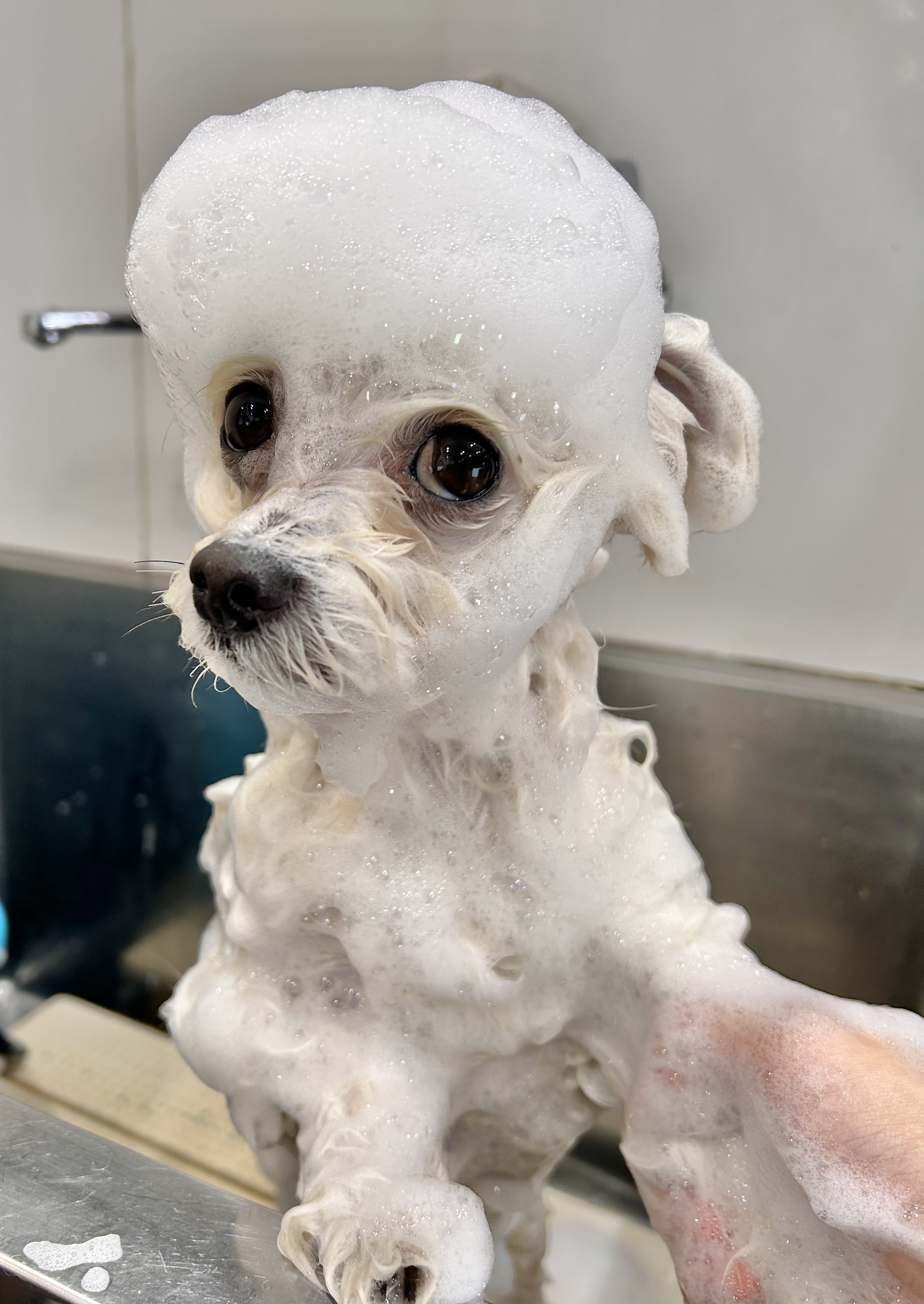 もこもこ泡で洗っていきます![]()