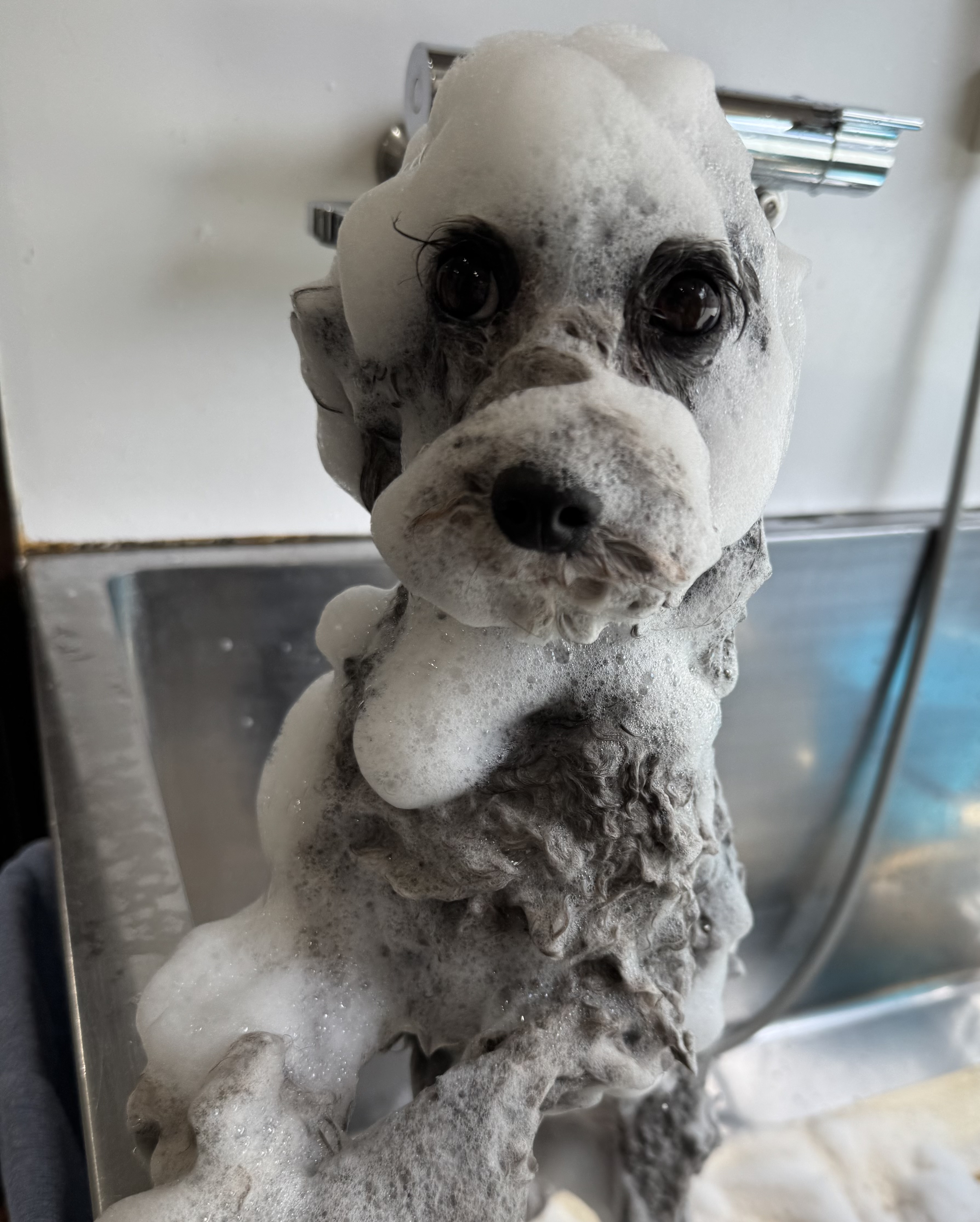シャンプーを流している時にとれた可愛いお写真がこちら![]()